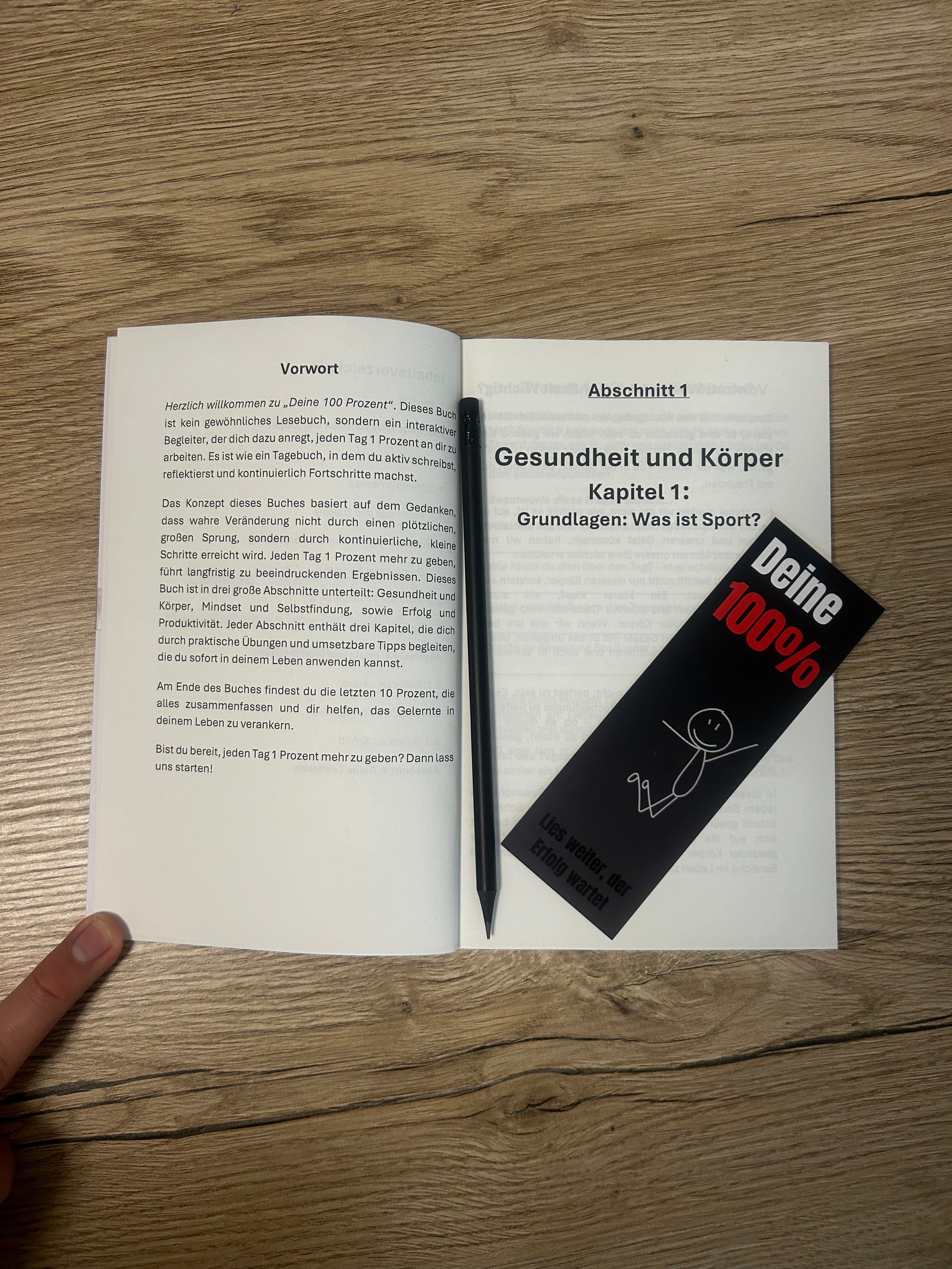 Im Bundle sind ein hochwertiger Graphitstift und ein motivierendes, erstklassiges Lesezeichen enthalten – ideal für deinen Weg zum Erfolg!