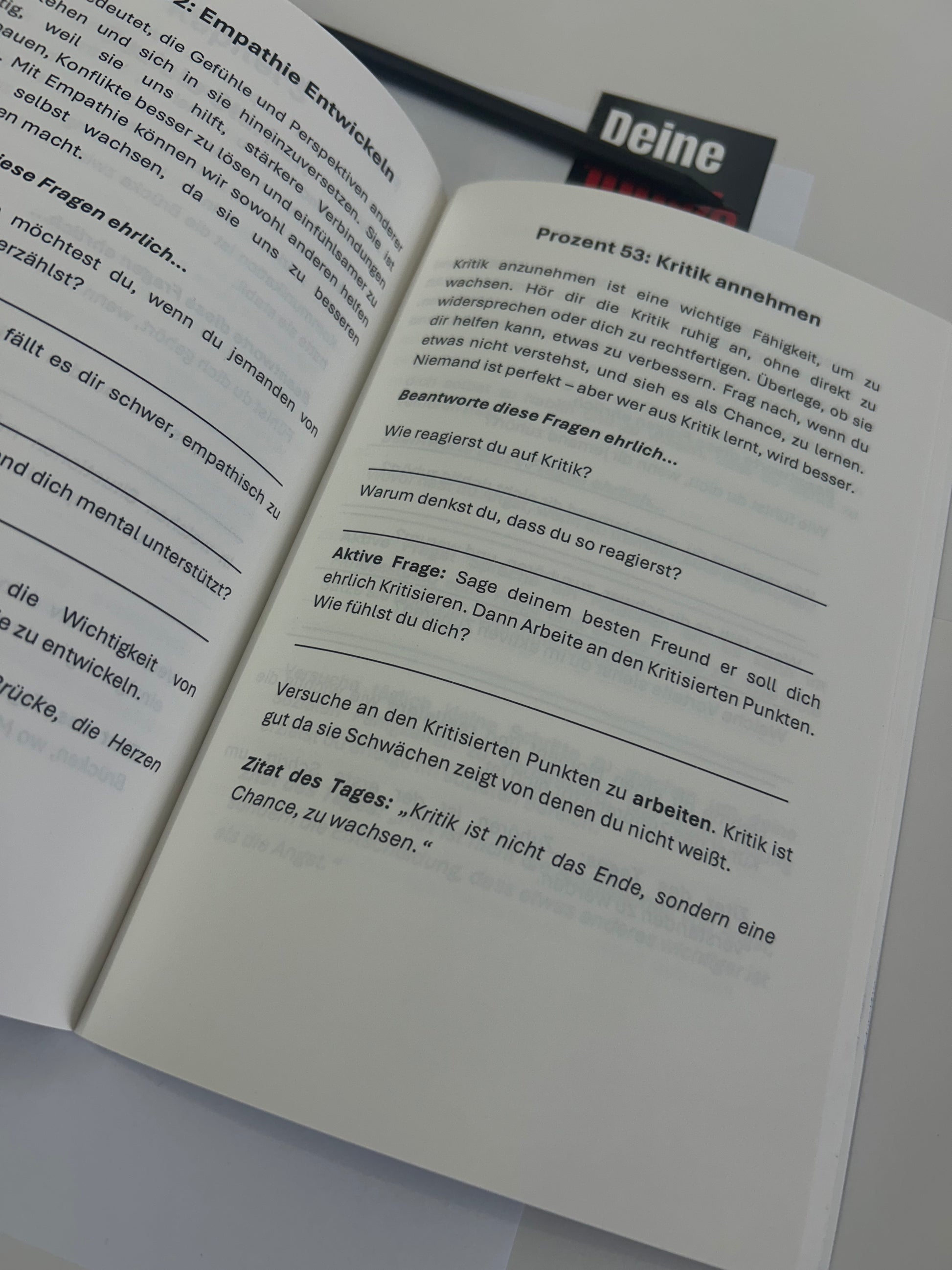 Hatte Zweifel, aber die Aufgaben haben mich wirklich motiviert. Das Buch ist kein Standard – ich fühle mich fokussierter und disziplinierter.